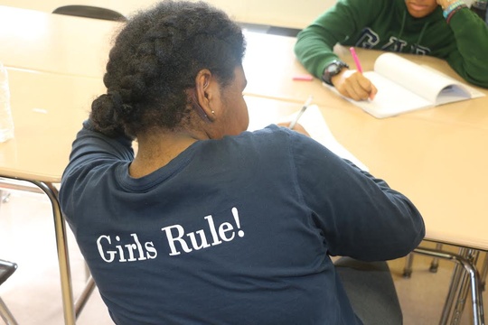 TYWLS Queens spoken word perform recite poetry high school cwpnyc Jamaica 9th grade writing give voiceThe young women in Ms. Blanding’s 9th grade class at TYWLS were able to explore what it means to come face to face with their true selves, during a wild, sometimes turbulent year, both within and outside their school walls. Jannah, a student in the class, had been quiet and reserved most of the year. Jannah never refused to participate, but she never exactly jumped at the chance to share her work. This was the case until the residency, with CWP teaching artist Katie Rainy, was winding down and the young women were hard at work revising their final poems that would be placed in their anthology. Jannah, had been working diligently on her piece, “Today,” for the anthology, a piece which she first drafted in November, the piece that she stood up and not only recited, but performed, to her class.