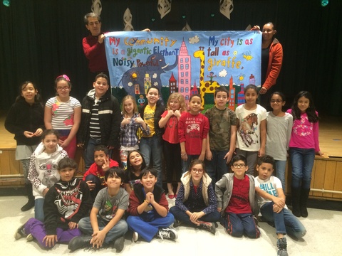Painting Non Profit Mural Arts in Education Red Hook Unveiling School Education Brooklyn Arts Children Artist Teaching Teaching Artist CWPNYCStudents in the 3rd and 4th grade at a Brooklyn CWP Residency celebrated the unveiling of a mural painted the previous year's 3rd grade students. Each student had a hand in painting the mural, which now hangs in the entry way of thier school.