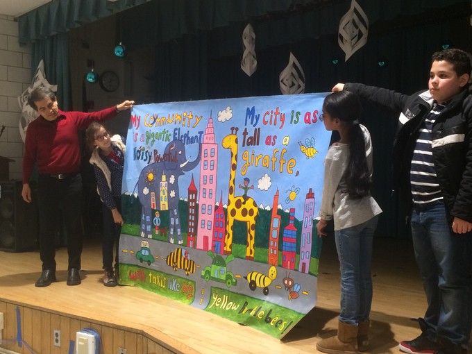 Painting Non Profit Mural Arts in Education Red Hook Unveiling School Education Brooklyn Arts Children Artist Teaching Teaching Artist CWPNYCStudents in the 3rd and 4th grade at a Brooklyn CWP Residency celebrated the unveiling of a mural painted the previous year's 3rd grade students. Each student had a hand in painting the mural, which now hangs in the entry way of thier school.