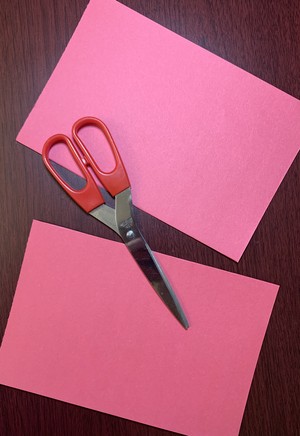 Put your red paper halves together and fold in half again, but this time hot dog style