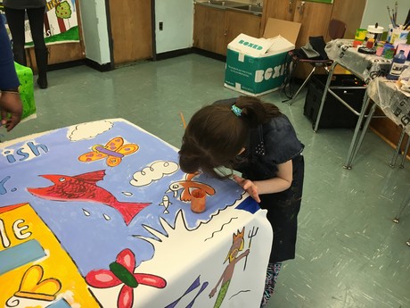 Painting Mural Williamsburg Brooklyn elementary school Visual Arts teaching Artists HBO Muralist PS 84 Poetry Linklaters 3rd graders CWPNYC
