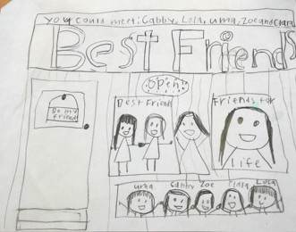 As part of their culminating project, students created “story-fronts” to represent stores that would sell the things in their community that cannot be bought – the things that they love the most of which they are the most proud. Some of the “story-front” examples are below. The students were able to explore important themes of friendship, faith, confidence and adventure with art that is both abstract and fun and imaginative.