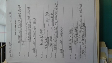Bronx music Students teacher CWPNYC Afterschool theatre writing 8th grade 7th grade artist teaching artist heroes journey singing Burnside Ave PS/MS 279 song Ethan Hawke hero guitar Middle School 6th grade poetryThe theme of this lesson at PS/MS 279 Afterschool was “Where I’m from”. Students were given a prompt for a quick free-write to begin to explore ideas about the things that they consider to be parts of their identity. The class read “Where I’m From” by George Ella Lyon and completed a template based on the poem.