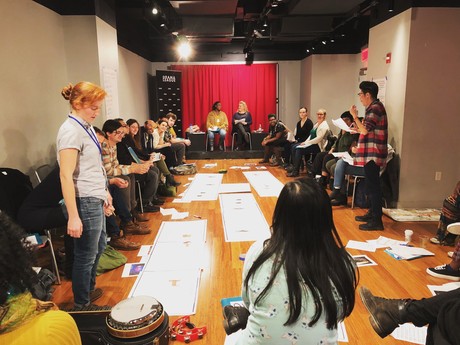 reflection objectives artist co-teaching assessment lesson plans TAP Teaching Artist Project planning habits of mind inquiry advanced trainees Teaching ArtistOne December 2nd, 2017, our New & Beginning and Student Teaching Artist Project trainees gathered once again at The Drama League for a day of collaborative lesson plan presentations, while the Advanced trainees had a relaxing day off. These teaching teams spent the last three weeks collaborating on some innovative lessons, many for the first time, and for this fourth workshop we had twelve teams step up to present.